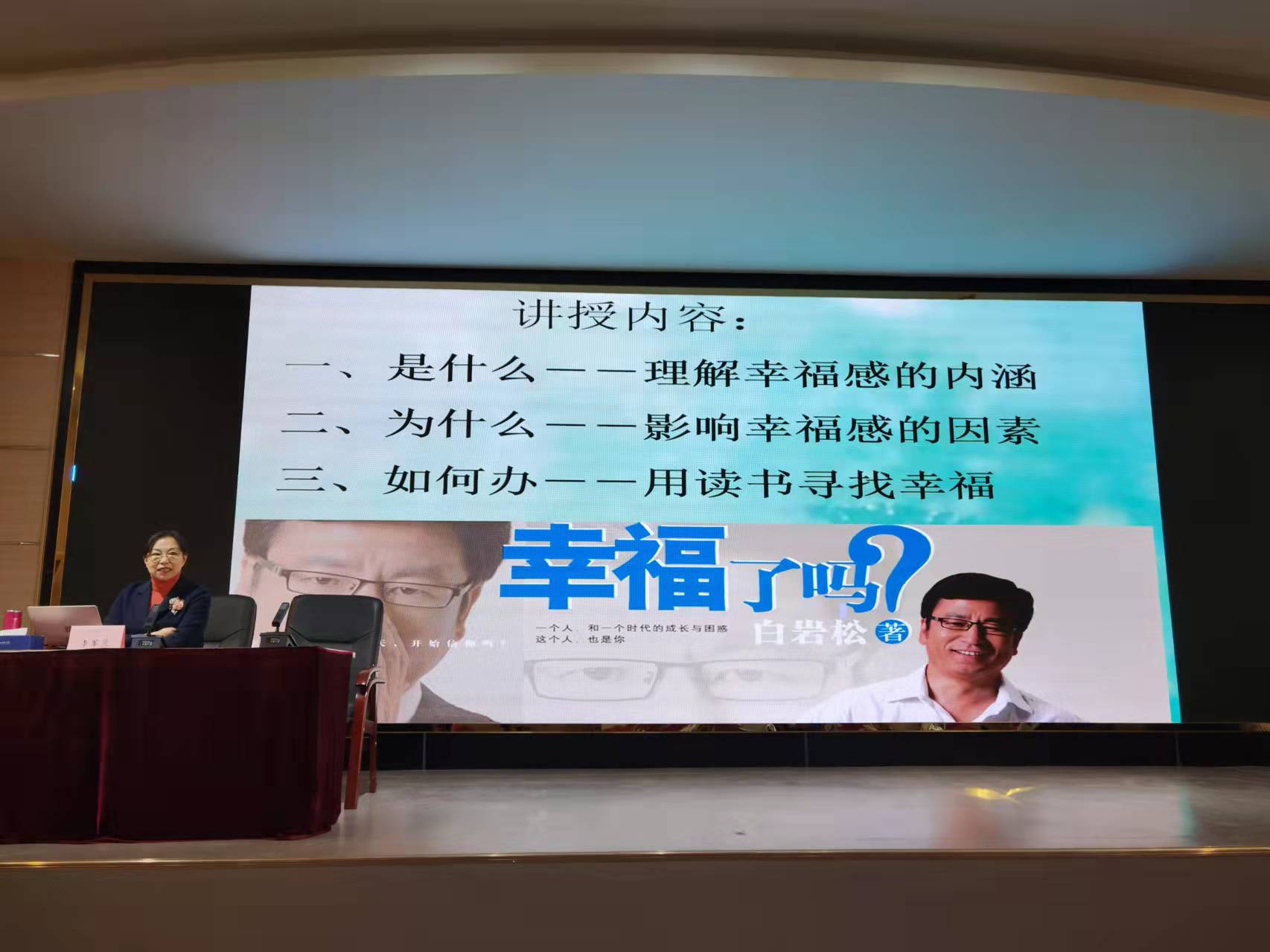 太原师范学院心理学教授、学科带头人、太原心理咨询师协会会长李军兰教授以《幸福感—从读书开始》为题,从理解幸福感的内涵是什么、影响幸福感的因素有哪些、如何用读书寻找幸福的方法三个方面展开论述。李教授结合自身的生活经历以及丰富的教学经验,现身说法,让在场师生深切感受到读书有益于修身养性,更有益于明理助业,同时,教师职业的幸福感、自豪感得到提升。