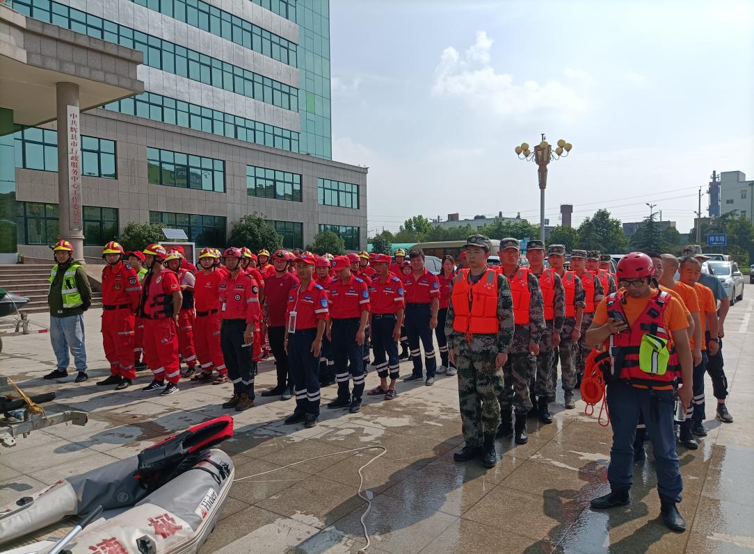 7月24日到达占城镇,该地受灾群众较多,平均水位较高,最深处可达两米,经过一天的奋战,深水区群众全部获救,人员物资保障基本到位。