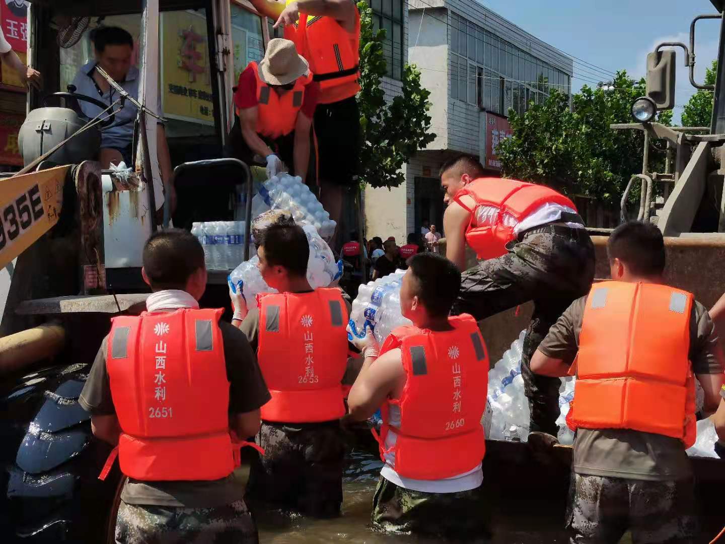 7月23日到达峪西镇,连夜向受灾地区搬运物资,竭尽所能帮助受困群众。
