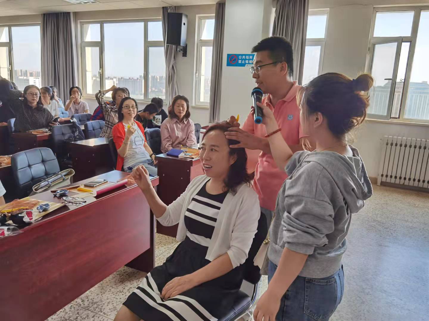 为庆祝第37个教师节,进一步深化党史学习教育,继续为群众办实事、办好事,9月9日下午,学院工会教职工“健康工程”系列活动第四期——芳香头疗养生讲座在厚德楼12层大会议室开讲。讲座由工会主席刘爱红主持,近百名教职工及学生参加了讲座。