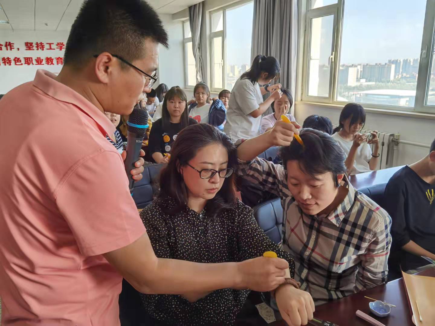 本次活动特别邀请到我院2008届山西省优秀毕业生王耀华,他凭借多年临床中医健康管理经验,针对教师常见职业病,为老师们量身定制秋季健康管理方案,重点教授以中医经络穴位为基础、可操作性强的头部芳香疗法。现场演示过程中,大家认真学习、亲手操作,气氛热烈、场面温馨。
