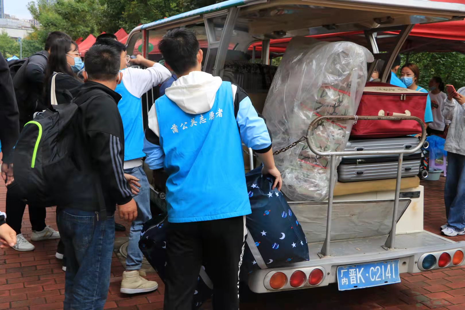 报到期间,学校实行校园秩序及交通临时管理措施,保证校园秩序良好运行和师生交通安全。校园内外迎新的横幅、电子屏格外醒目,迎新帐篷排列整齐。从踏进校门的那一刻开始,报到区、家长等候区、行李暂存区、公寓前,校园内遍布身着蓝色马甲的“蒲公英志愿者”的身影,主动询问、提供帮助;迎新岗位上的老师们细心讲解、耐心引导;学院(校)领导亲临报到现场、深入宿舍、餐厅,关怀家长和新生,嘱咐全体工作人员坚守岗位,提供优质服务。志愿者和校园的每一位师生、工作人员都用温暖的笑容、热情的关怀向新生和家长诉说着同样的心情,“你好,新同学,欢迎回家!”