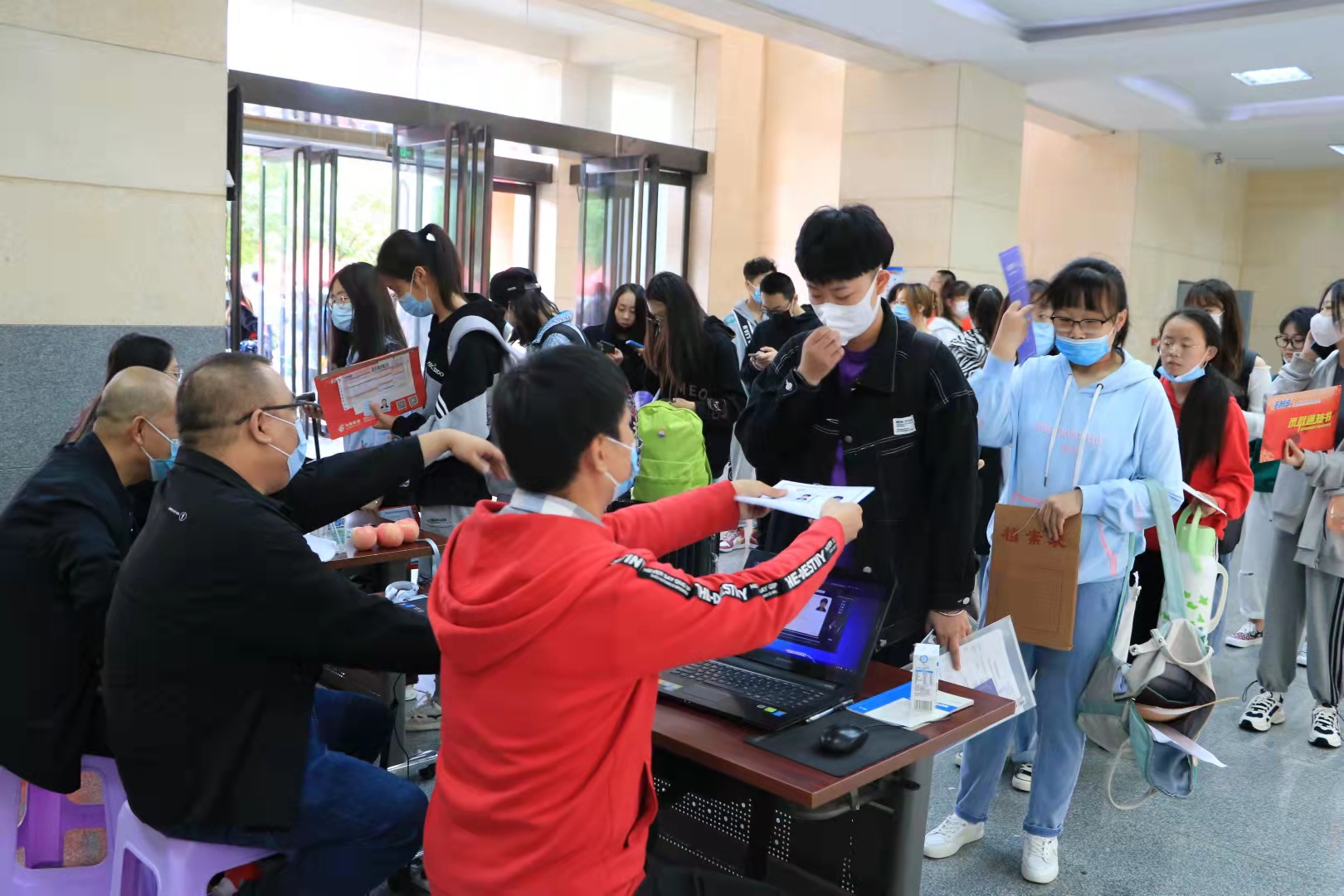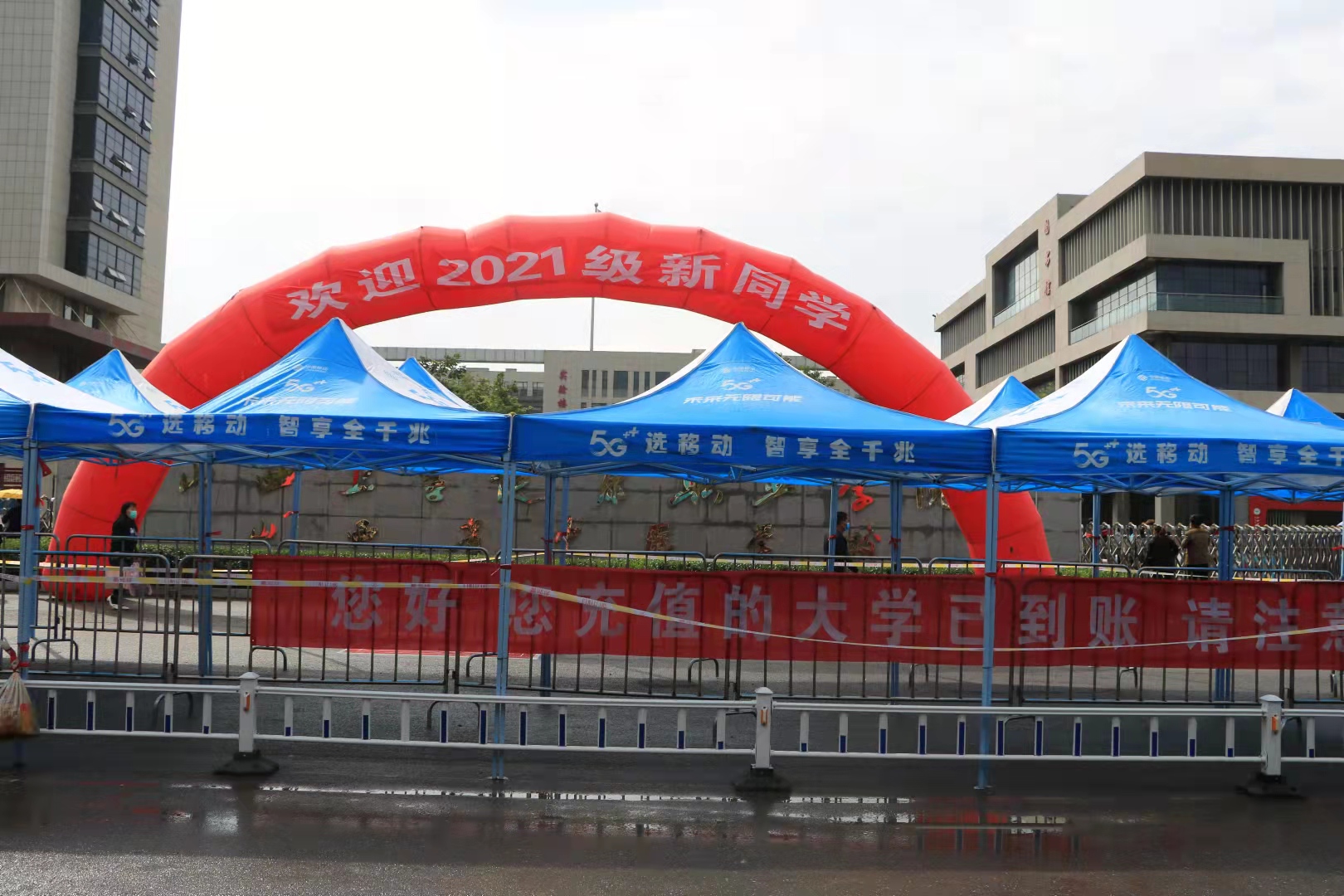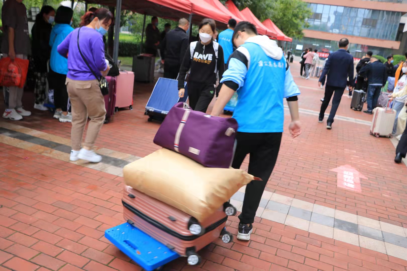 清晨7时许,新生辅导员、各相关部门工作人员、学生志愿者早早就位,翘首以待,喜迎来自四面八方的新同学。为做好新生入学报到的疫情防控工作,学院(校)提前部署,在严格落实防疫要求的基础上,确保每一位进入校园的新生和家长都有核酸报告和通行绿码。校门外还设有临时核酸检测服务点,为不能提供48小时核酸报告的新生现场进行核酸检测,严格防疫举措与贴心服务照顾到新生的方方面面。