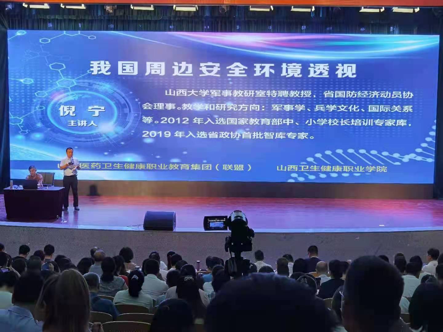 山西大学军事教研室特聘教授,省国防经济动员协会理事倪宁教授进行题为《我国周边安全环境透视》的开班第一讲。