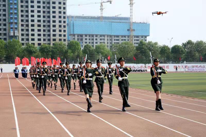 5月13日上午,运动会开幕。伴随着慷慨激昂的运动员进行曲,国旗校旗护旗队、康养仪仗队、花束队、裁判员方队走进运动赛场,紧随其后的是文津校区各二级学院、系(部)学生方阵以及远道而来的康养方阵。这是两校区学生首次同台竞技,他们都以饱满的精神状态,在清脆嘹亮的口号声中,依次通过主席台接受检阅。