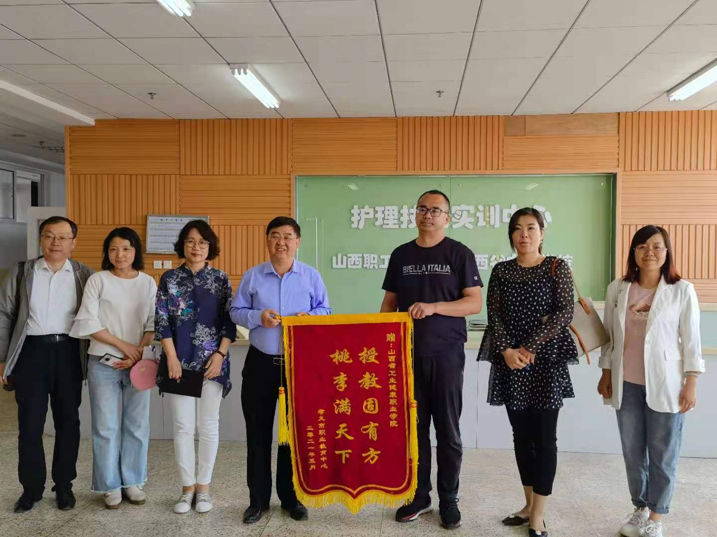孝义职教中心对我院的接访表示感谢,并赠与我院 “授教固有方、桃李满天下”的锦旗,表示要进一步发挥山西卫生健康职业教育集团(联盟)的平台作用,加强成员间的交流合作,取长补短、优势互补,更好促进学校专业的设置和开展。