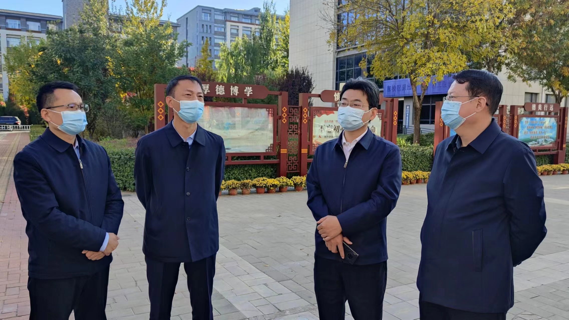 10月17日下午,省教育厅副厅长侯文一、安全稳定工作处处长武振杰一行对我院文津校区疫情防控和安全稳定工作落实情况采取“四不两直”的方式进行督导检查。学院党委书记冀孝如,党委副书记、院长王轩陪同调研。