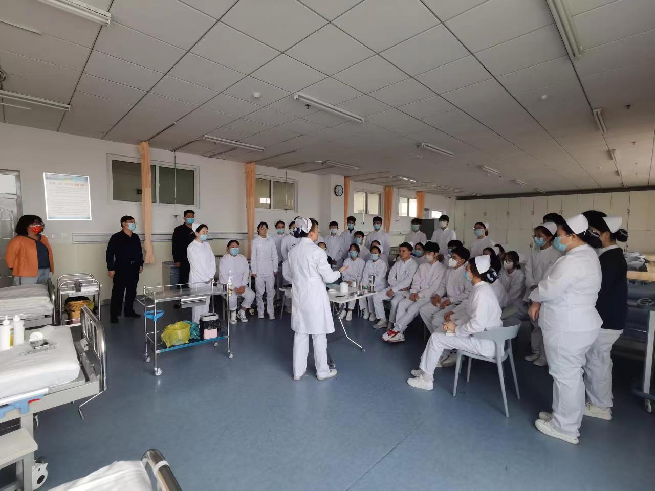 5月16日上午,学院副院长屈玉明前往护理学院、药学院、口腔系看望参加技能大赛训练的学生和指导老师,并检查线下实训课程开展情况,教务处长赵东家全程陪同。