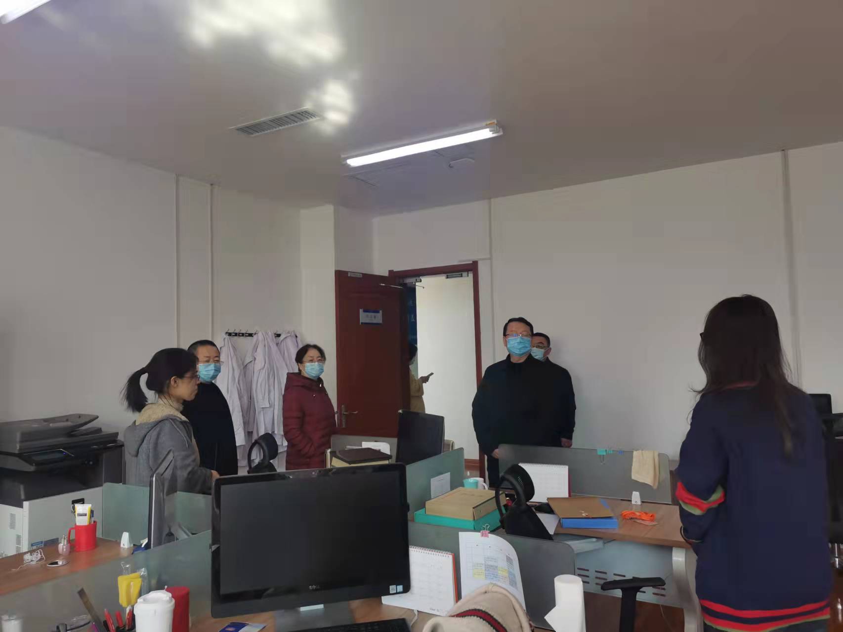 随后,学院领导一行来到卫管人文社科部、药学院、医学系、口腔系、药物一致性分析检测中心、医学基础部等教学科研部门,查看工作人员值班值守情况,详细了解封闭管理情况下学生生活情况、师生线上教学制度执行情况、防控措施落实情况以及目前存在的困难和问题。冀孝如对各教学科研、管理服务部门抢前抓早、全面细致的防控工作给予肯定,对学院全体工作人员的辛勤付出、无私奉献表示感谢。