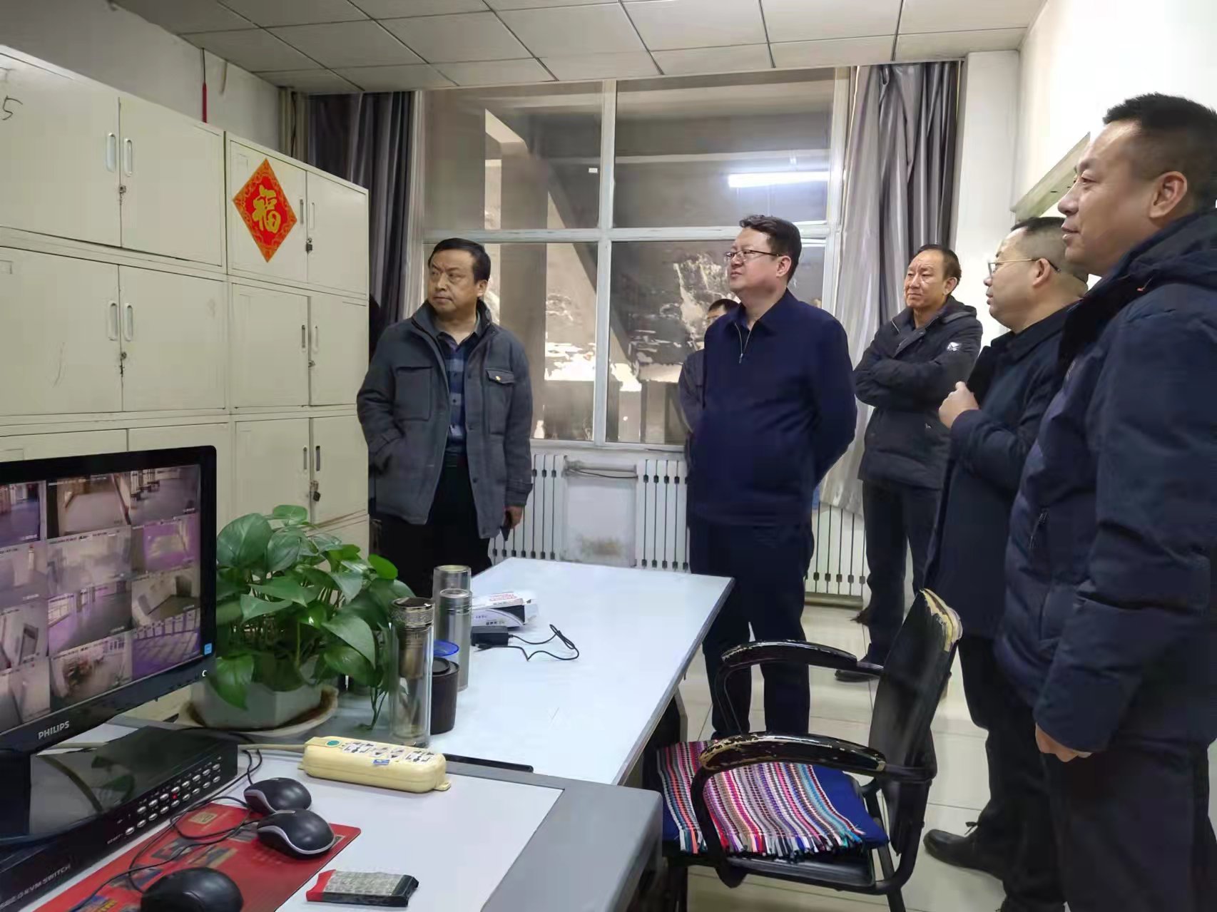 在对高压配电室、二次供水泵站、消防控制室、视频监控室、食堂等重点部位安全检查中,冀孝如、王旭对假期安全保障工作提出具体要求,一是各岗位工作人员要认真贯彻落实习近平总书记关于安全生产的重要指示精神,坚持“人民至上、生命至上”“安全第一,预防为主”的理念,严格落实岗位安全责任,深刻吸取近期国内发生的各类安全事故教训,加强值班值守,强化隐患排查整治,杜绝一切风险因素,筑牢校园安全防线,确保寒假期间留校学生的生命财产安全和校园安全稳定;二是按照省委省政府、省教育厅和属地疫情防控要求,寒假期间校园实行封闭式管理,学生未经批准不得进出校园,教职工进出校园必须“一测三查”,外来访客一律不准进入校园,当天批准进入校园的人员和车辆必须登记备查;三是最大限度缩减安全与后勤服务人员,后勤服务人员要每日对学生公寓、教学楼等重点区域进行预防性消毒,加大校园环境卫生整治,保障师生身体健康;四是严格食堂食品安全管理,所有食品原材料全部索票索证,加强食堂就餐环境、餐具和冷链食品的消毒,食堂要向师生提供物美价廉、品种较多的饭菜,春节期间要对食堂进行装饰,创造新年新气象。