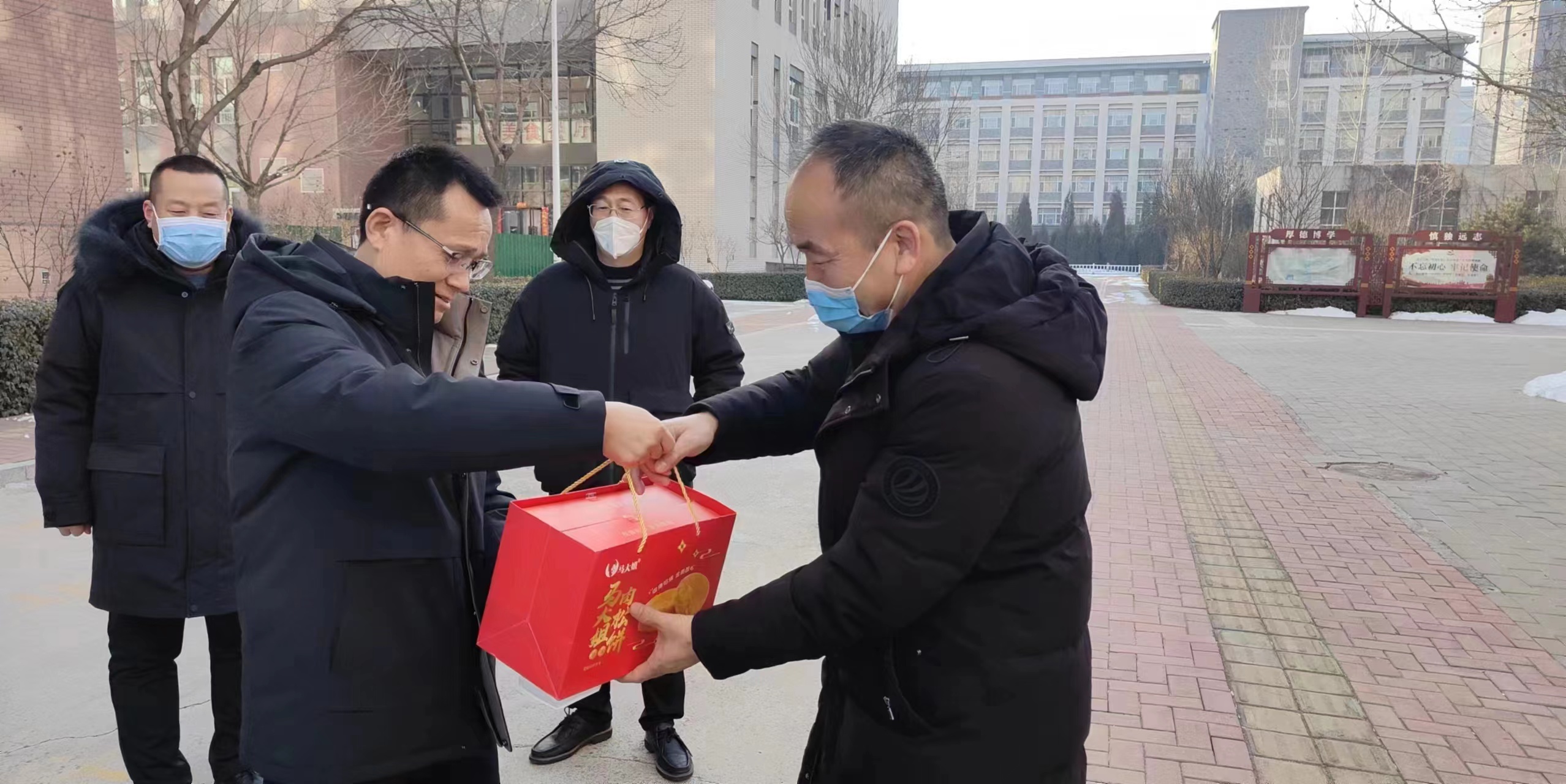 金虎辞旧,玉兔迎新。1月22日,农历癸卯年正月初一清晨,学院党委书记冀孝如,党委副书记、院长王轩带领有关处室负责人来到榆次文津校区,亲切慰问春节期间坚守岗位的一线安保人员、教职工和内职班留校学生,为大家送上美好的新春祝福,祝愿大家身体健康、工作顺利、阖家幸福!