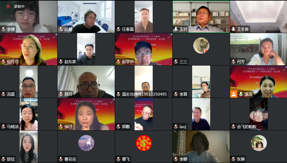 为进一步深入学习宣传贯彻党的二十大精神,切实推动党的二十大精神进教材、进课堂、进头脑, 12月9日晚上,我校通过腾讯会议开展线上学习宣传贯彻党的二十大精神集体备课会。学院领导及宣讲团成员代表、思政课教师、党委办公室、党委宣传部、教务处、各二级学院部门负责人共32人参加会议。会议由思政部主任董民丽主持。