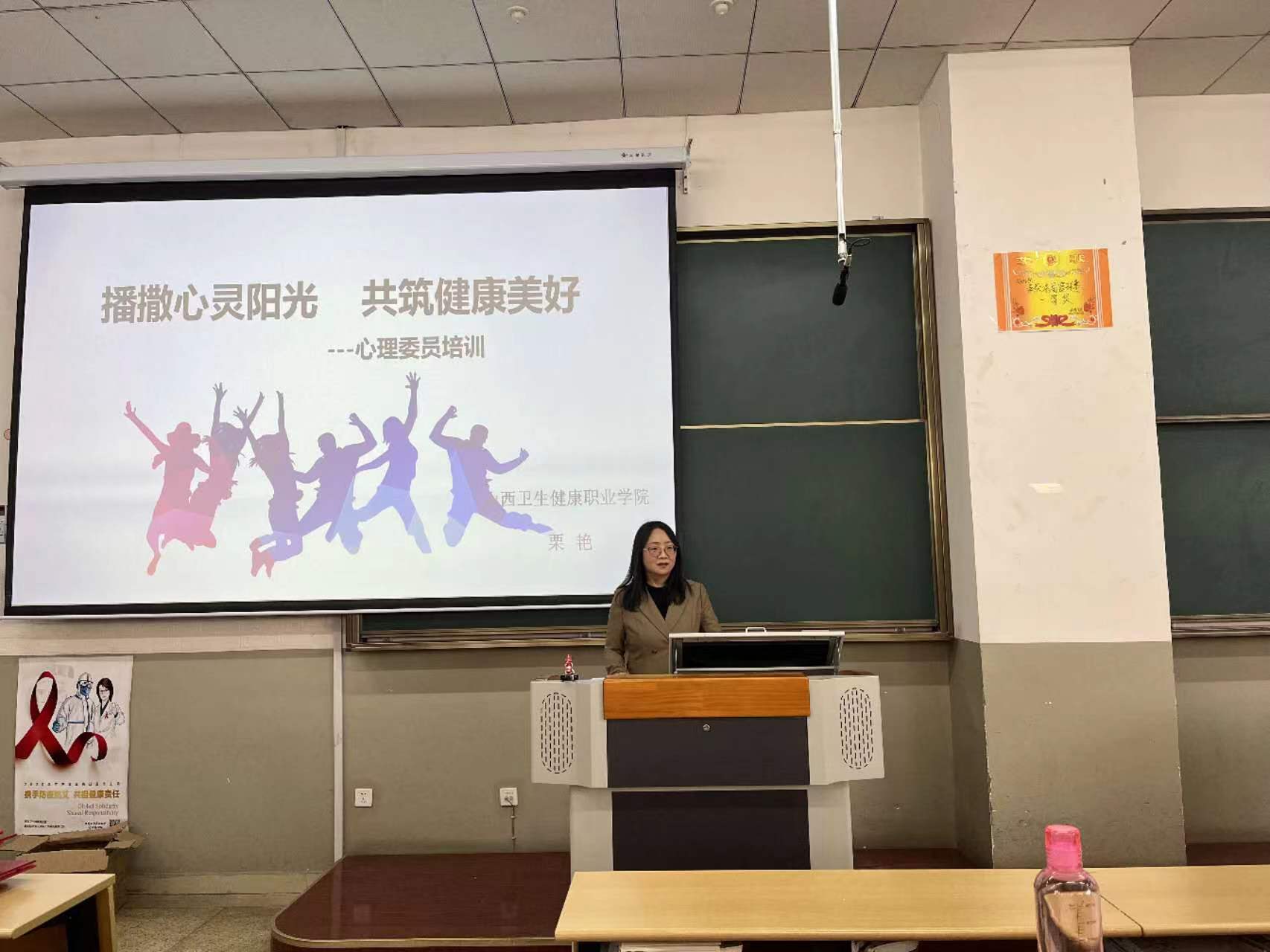 颁奖过后,栗艳老师为全院心理委员作了题为《播撒心灵阳光,共筑健康美好》的讲座,生动有趣地讲解了心理委员工作如何开展,帮助心理委员明确工作定位和方向,进一步强调了心理委员在预防心理危机事件发生中所承担的重要角色。