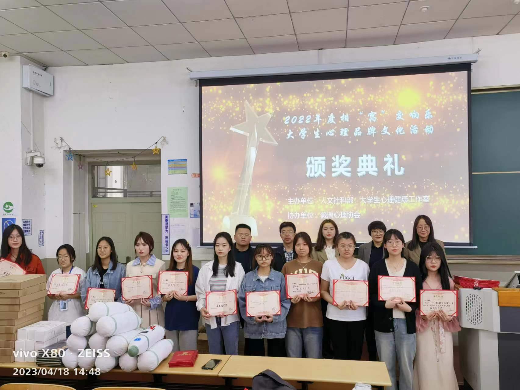 为响应学院关于加强大学生心理健康教育的工作安排,切实推进学院铸魂育人 “相‘寓’交响乐” 文化品牌建设,4月18日,人文社科部大学生心理健康工作室在第九阶梯教室举办颁奖典礼及心理委员培训讲座。