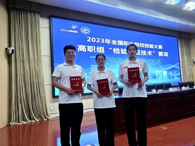 8月4日至6日,2023年全国职业院校技能大赛高职组检验检疫技术赛项在山东医学高等专科学校举行,我院医学系2021级医学检验技术专业学生王涛、李梦琪、任玉珠代表学院参赛荣获团队三等奖,指导教师:朱海英、王超、李爱凤、牛丽丽、张敏、张志华。