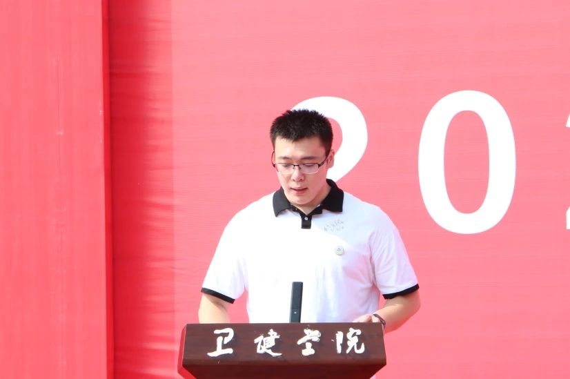 党委副书记、院长王轩代表学院欢迎2023级新生加入卫健学院这个大家庭并作了题为《青衿之志、且待芳华,争做“自找苦吃”的新时代“限定”青年》的讲话。