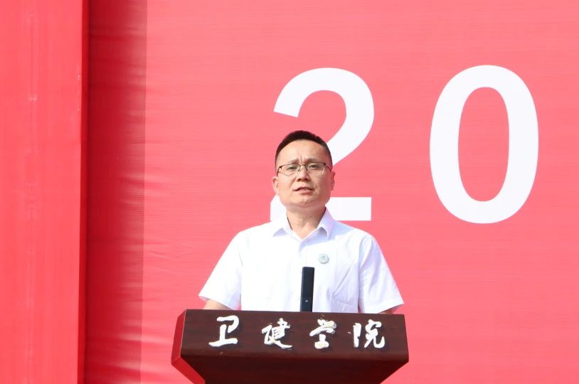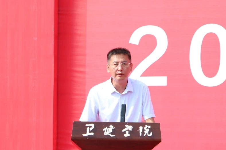 他表示,今年是学院建校70周年,学院(校)迎来了事业高质量发展的战略机遇期,卫健学子也拥有比以往更优越的发展环境和更广阔的成长空间。为帮助大家更快适应大学生活、过好大学生活,他对新生提出三点希望。一是拿出敢于吃苦的勇气,潜心为学,在知行合一中练就过硬本领。要有乐于学习的热劲、勤于学习的韧劲、善于学习的巧劲,尽快确立人生目标,找准人生方位,立学致知,强化医技素养和人文素养,努力使自己成为一个有学识、有涵养的优秀当代大学生。二是培养善于吃苦的能力,倾心为事,在主动奋进中展现人生价值。要继承和弘扬卫健先辈们护卫生命、维系健康的坚定信念和慎终如始、善作善成的坚定意志,脚踏实地、勤勤勉勉,以高昂的姿态、挺直的脊梁走好新时代的长征路,在接力奋斗中跑出属于自己的好成绩。三是修炼乐于吃苦的境界,正心为人,在修德立身中拓展人生格局。要胸怀“国之大者”,树立为卫生健康事业奋斗终身的远大理想和抱负,坚定奉献人类卫生健康事业的信念。还要不断涵养品德修为,追求更有高度、更有境界、更有品位的人生。