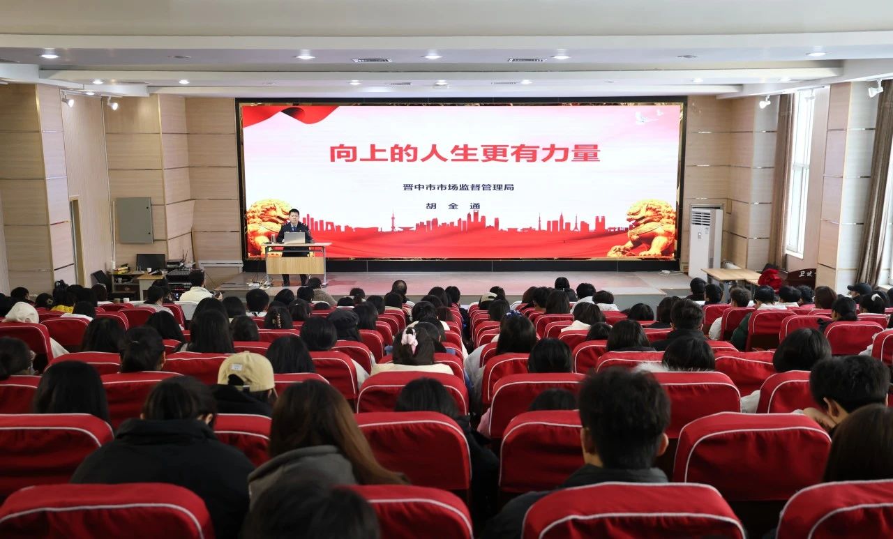 12月12日,由学院举办的“劳模工匠进校园”宣讲活动在报告厅举行,200名师生现场聆听。本次宣讲活动邀请晋中市市场监督管理局食品安全协调科科长胡全通担任主讲人。胡全通2021年被国家市场监管总局授予“全国市场监管卫士”称号,2022年被党中央、国务院表彰为“全国人民满意的公务员”,受到习近平总书记等党和国家领导人的亲切会见。