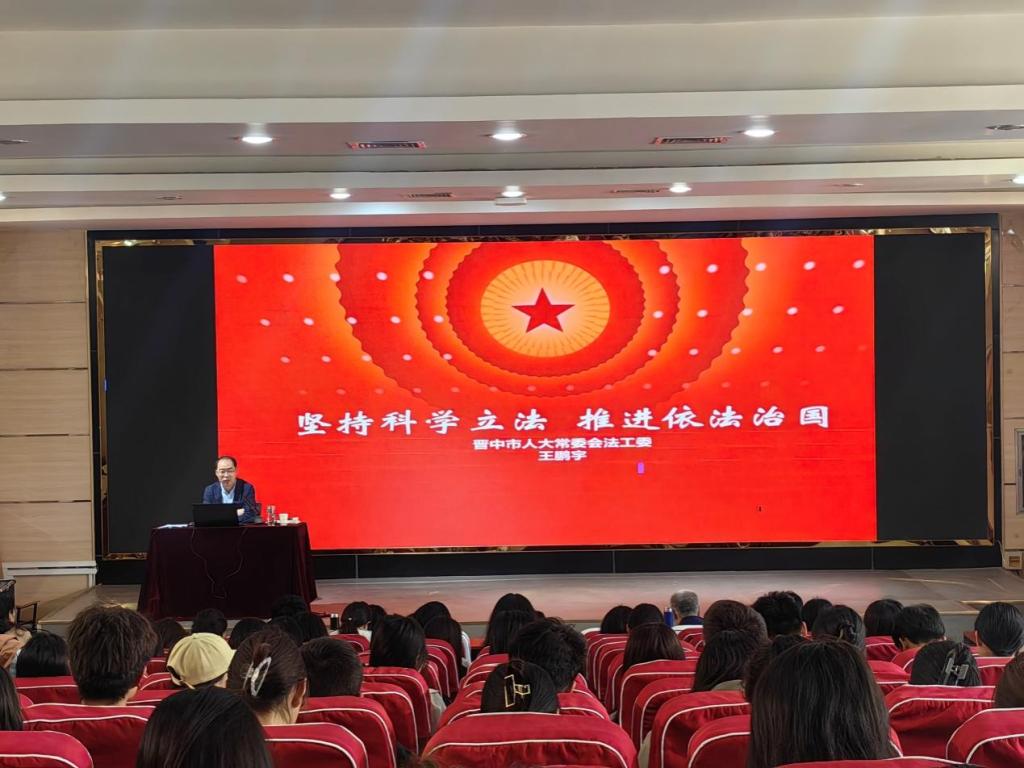 为深入学习贯彻习近平总书记关于全面依法治国的重要论述,推动新时代法治校园建设,提升学生的法律意识和法治素养,4月16日,学院思政部邀请晋中市人民代表大会常务委员会法工委法工科科长王鹏宇在学院报告厅举办专题普法讲座,思政课专任教师和学生代表参加讲座。