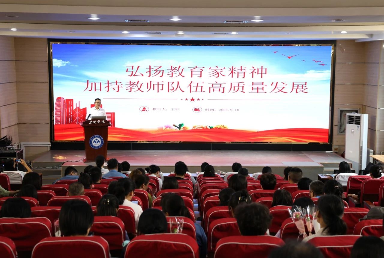 为全面深刻贯彻领会习近平总书记关于教育家精神的重要论述,增强广大教师立德树人和教书育人的使命感、责任感,持续加强和推进教师思想政治素质和师德师风建设,9月10日下午,学院党委副书记、院长王轩向全体专任教师作了题目为“弘扬教育家精神 加持教师队伍高质量发展”的“思政与师德师风”专题讲座。