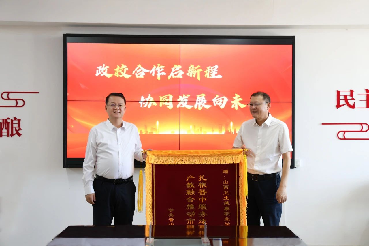 9月12日上午,晋中市政府副市长张拥军带队到我院文津校区进行座谈调研。座谈会上,张拥军代表晋中市委、市政府对我院在人才培养、免费向中小学师生以及市民开放校园和科普基地、积极协助开展“博士大讲堂”等方面为晋中市作出的贡献表示高度肯定,对进一步深化市校协同发展寄予更高的期望并向学院赠送题为“扎根晋中服务地方发展彰显真情 产教融合推动市校协同再续新篇”的锦旗,学院党委书记冀孝如代表学院接受锦旗。