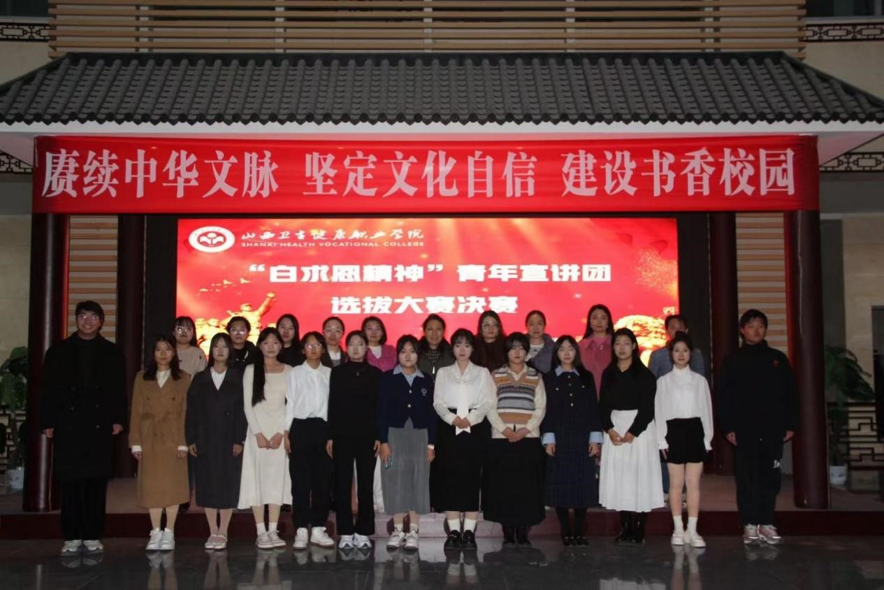 人无精神则不立,国无精神则不强。为号召广大师生学习白求恩同志以及优秀校友的感人事迹,感受白求恩精神蕴含的信仰力量、医学科学精神、医者职业精神,传承弘扬白求恩精神,12月3日下午,学院“白求恩精神”青年宣讲团选拔大赛决赛在文津校区图书馆一楼隆重举行。