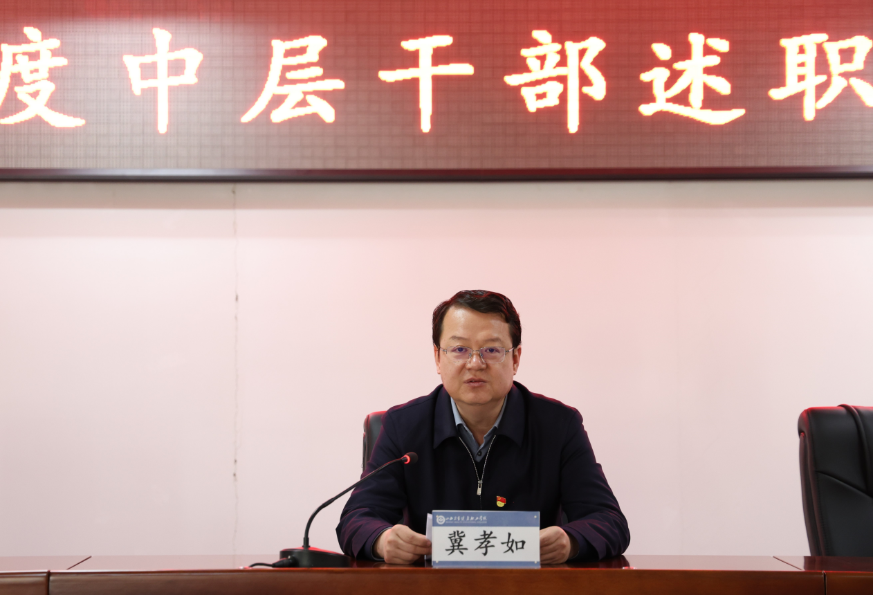 冀孝如充分肯定了中层干部一年来在学院各项工作中取得的新成效和新突破,也分析了当前面临的困难和挑战。他指出,年度述职考核大会不仅是对我们过去一年工作的全面盘点,更是校准方向、凝聚力量,迈向新征程的重要契机。