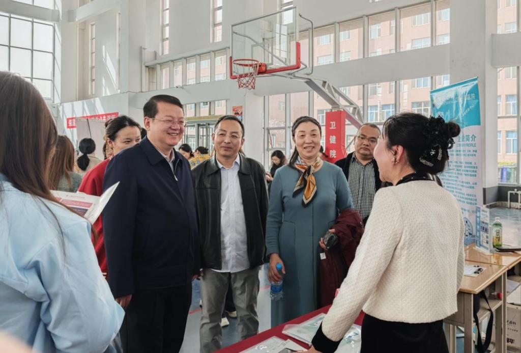 学院党委书记冀孝如深入双选会现场,开展企业实习、就业需求调研,与学生面对面交流,详细询问学生实习意向和准备情况,勉励同学们珍惜机会,充分展现自己的专业能力与综合素质,以积极的心态迎接实习。