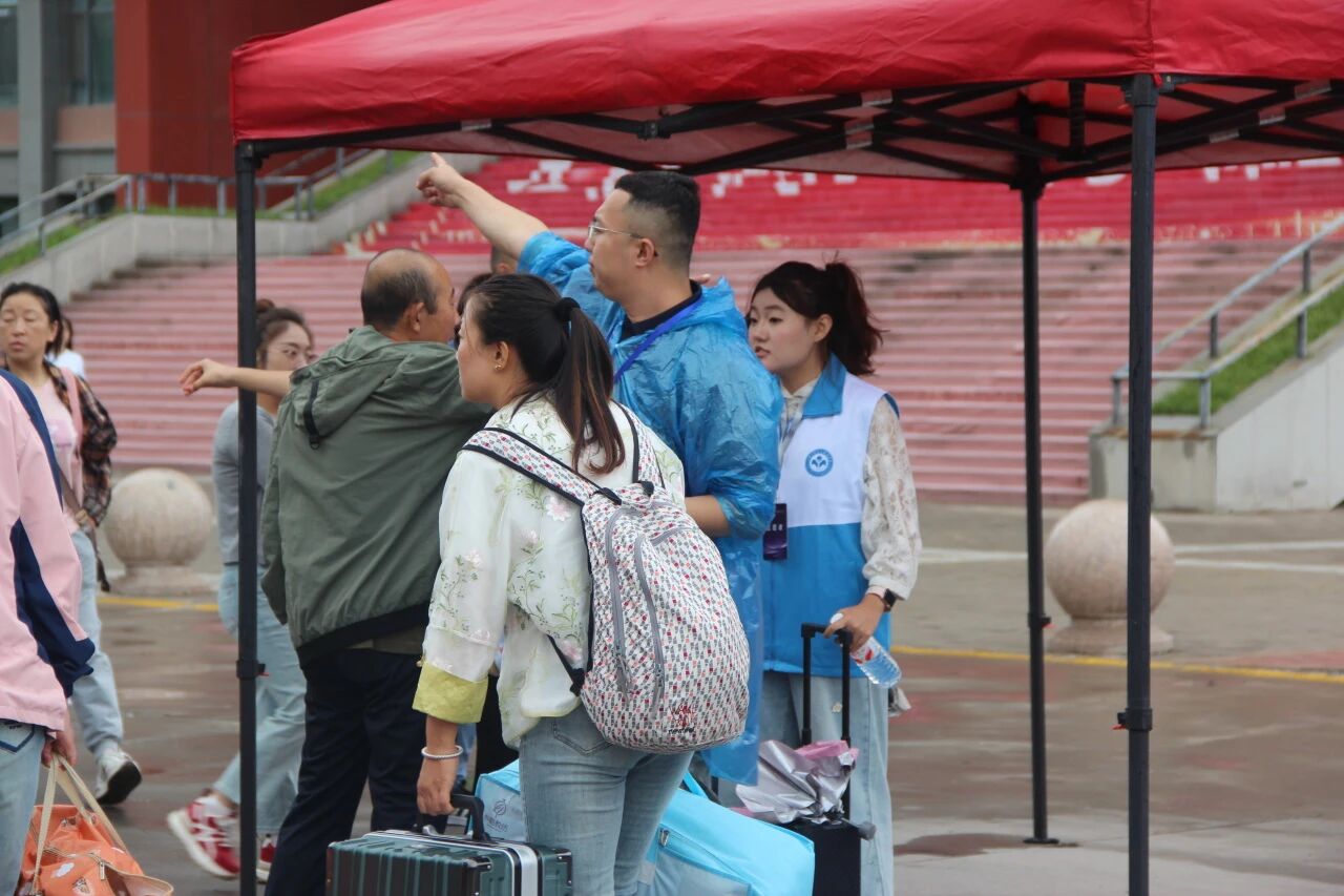 细雨绵绵不掩双向奔赴的热情。志愿者积极协助新生搬运行李、核验报到材料、讲解校园布局,用细致服务缓解新生初入校园的陌生感。