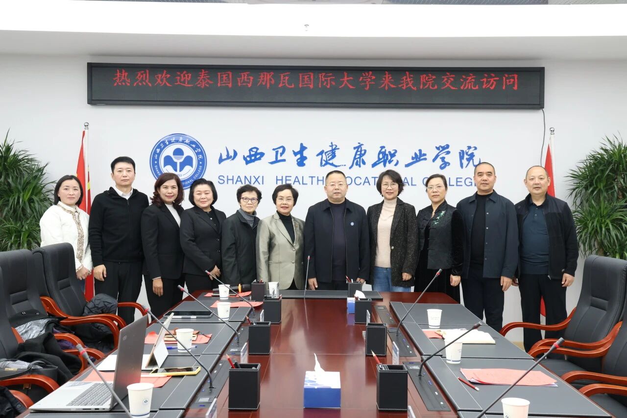 为深化国际教育交流与合作,11月24日,泰国西那瓦国际大学代表团的调研交流访问活动在我院举行。学院党委书记冀孝如,党委委员、副院长梁三平以及山西省中华职教社对外交流工作委员会秘书长张嘉共同出席。