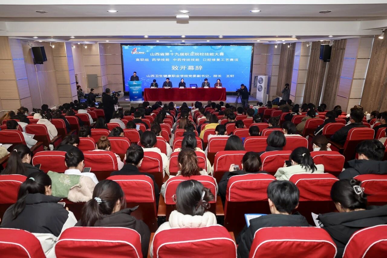 11月22日至24日,山西省第十九届职业院校技能大赛高职组药学技能、中药传统技能、口腔修复工艺赛项在我院成功举办,赛事以“技炫青春,能创未来”为主题,集中展现全省高职院校医药类专业教学成果与学子技能风采。山西省中华职业教育社专职副主任闫晓红,学院党委副书记、院长王轩出席开幕式。开幕式由学院党委委员、副院长赵东家主持。