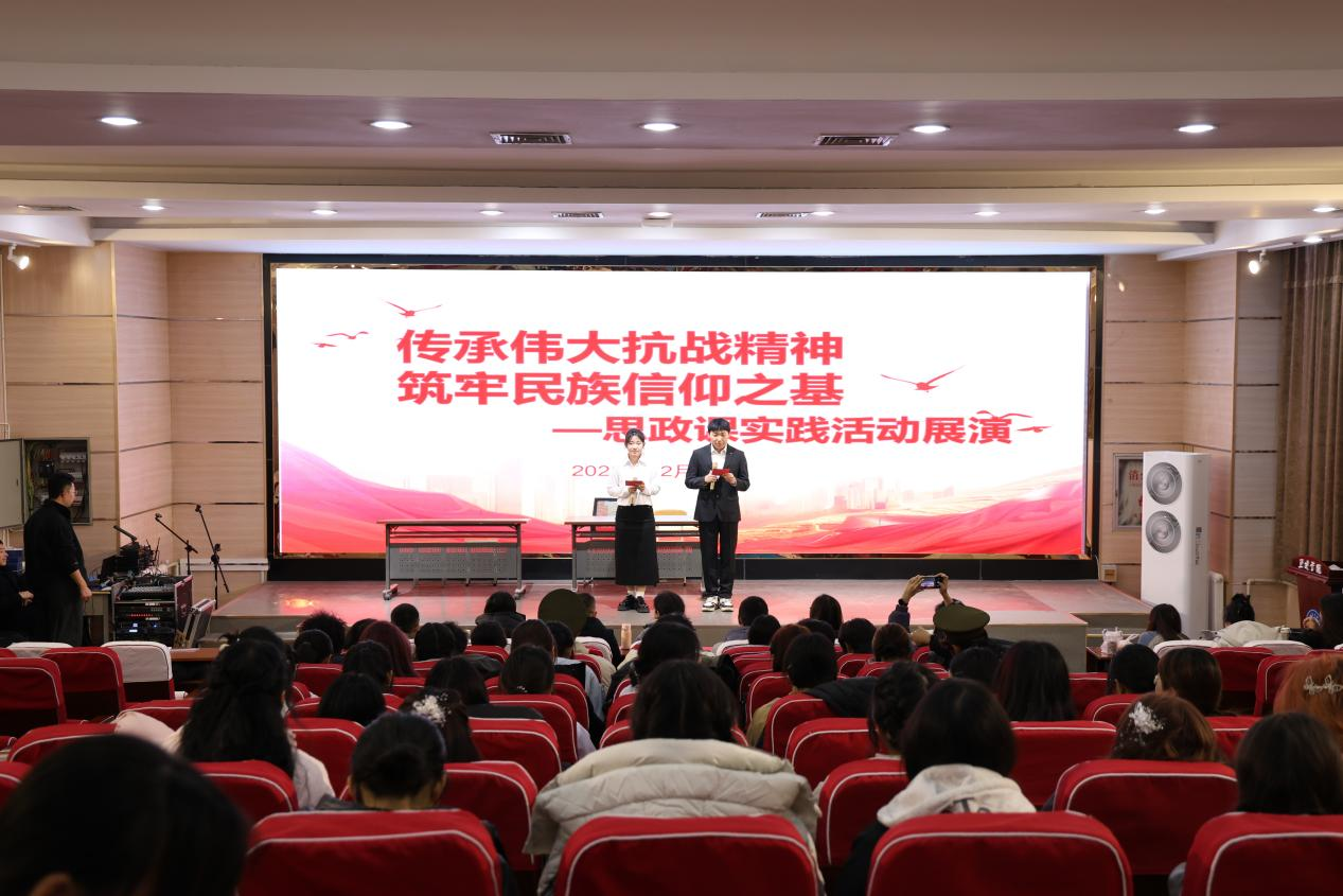 为纪念中国人民抗日战争暨世界反法西斯战争胜利80周年,深入践行习近平总书记关于弘扬伟大抗战精神,向着中华民族伟大复兴的光辉彼岸奋勇前进的重要论述,把伟大抗战精神融入思政课教学,12月1日,学院举办以“传承伟大抗战精神,筑牢民族信仰之基”为主题的思政课实践活动展演。