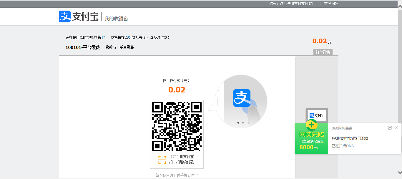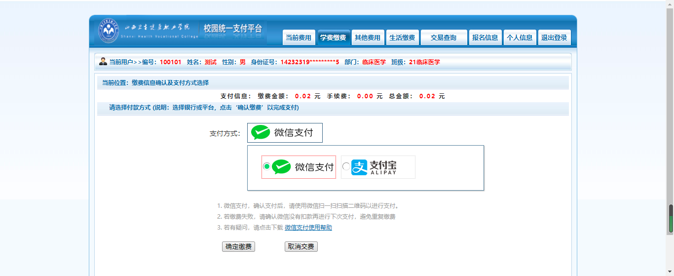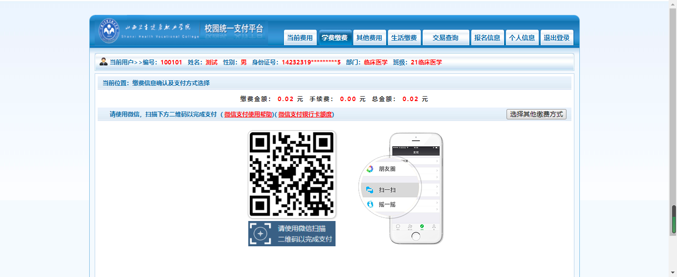 选择缴费方式,可以通过微信扫码或支付宝进行支付