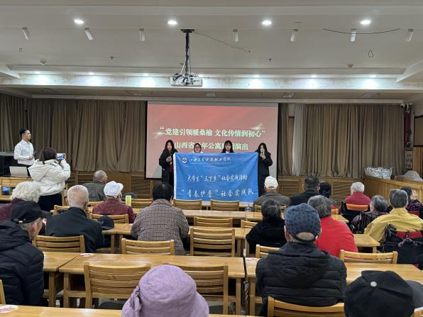 “党建引领暖桑榆,文化传情润初心”。2月10日,“青春护晋”社会实践队与学院南丁格尔志愿护理服务支队走进山西省老年公寓,将专业所学转化为有温度的志愿服务。队员们精心编排朗诵、手势舞,用青春律动打破冬日沉寂,为老人们送去节日的欢愉。演出结束后,实践队深入公寓各区域,参观养老院设施,并与院方工作人员、基层医护代表交流,详细了解老年公寓的日常照护模式、慢病管理举措及基层医疗资源配备情况,近距离感知养老服务体系的一线实践,进一步深化了对人口老龄化背景下基层医疗现状的认识。