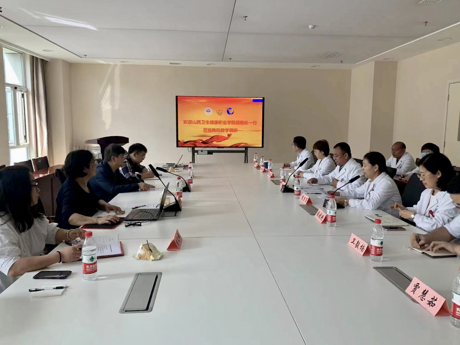 院校双方围绕学科建设以及进一步深化校企合作展开深入交流。屈玉明对山西盈康一生总医院教学工作给予高度赞赏,并针对医院进一步改进教学方式及提高教学水平提出建议。他指出,新《职业教育法》在职业教育发展途径、发展目标、发展要求等方面明确了校企合作新方向,期待继续加强院校交流,充分发挥院校合作优势,凝聚人才与技术力量,以教促医,以医带教,共同做好学生的各项管理工作。
