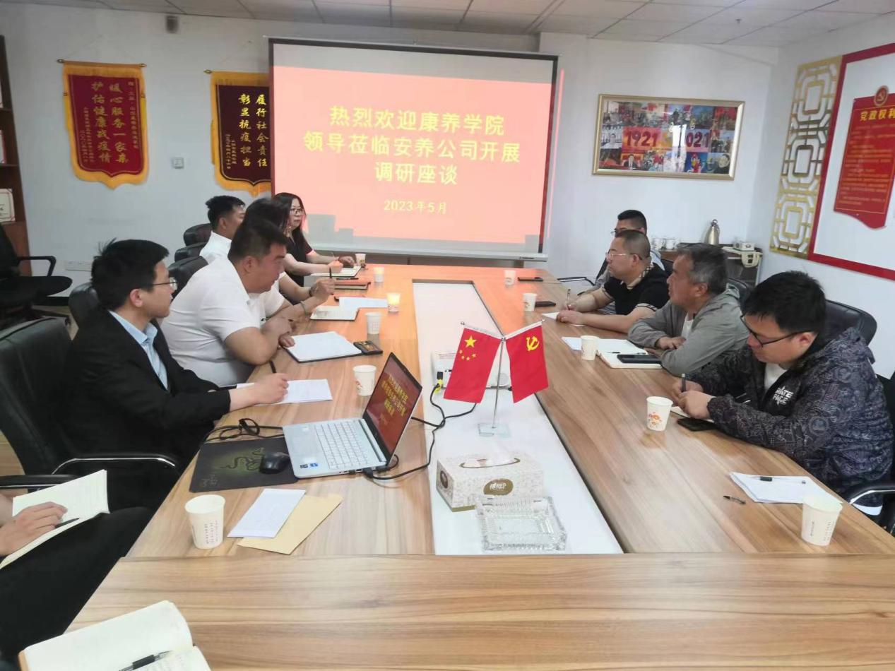 调研组围绕“如何促进产教融合”,探讨校企合作的融入问题。梁三平从康养产业人力资源市场供需矛盾、校企合作产教融合如何走深做实,商讨“订单式”人才培养办学到企的可行性。他表示,康养学院即将迎来第一届毕业生,企业要进校宣讲,促进学生就业。双方就安养公司运行情况和面临的问题,从学校人才培养与企业用人如何实现无缝对接、康养产业发展面临的机遇和挑战、构建大康养理念,坚持医养结合,科学合理布局规划,实现差异化发展等方面展开深入交流。