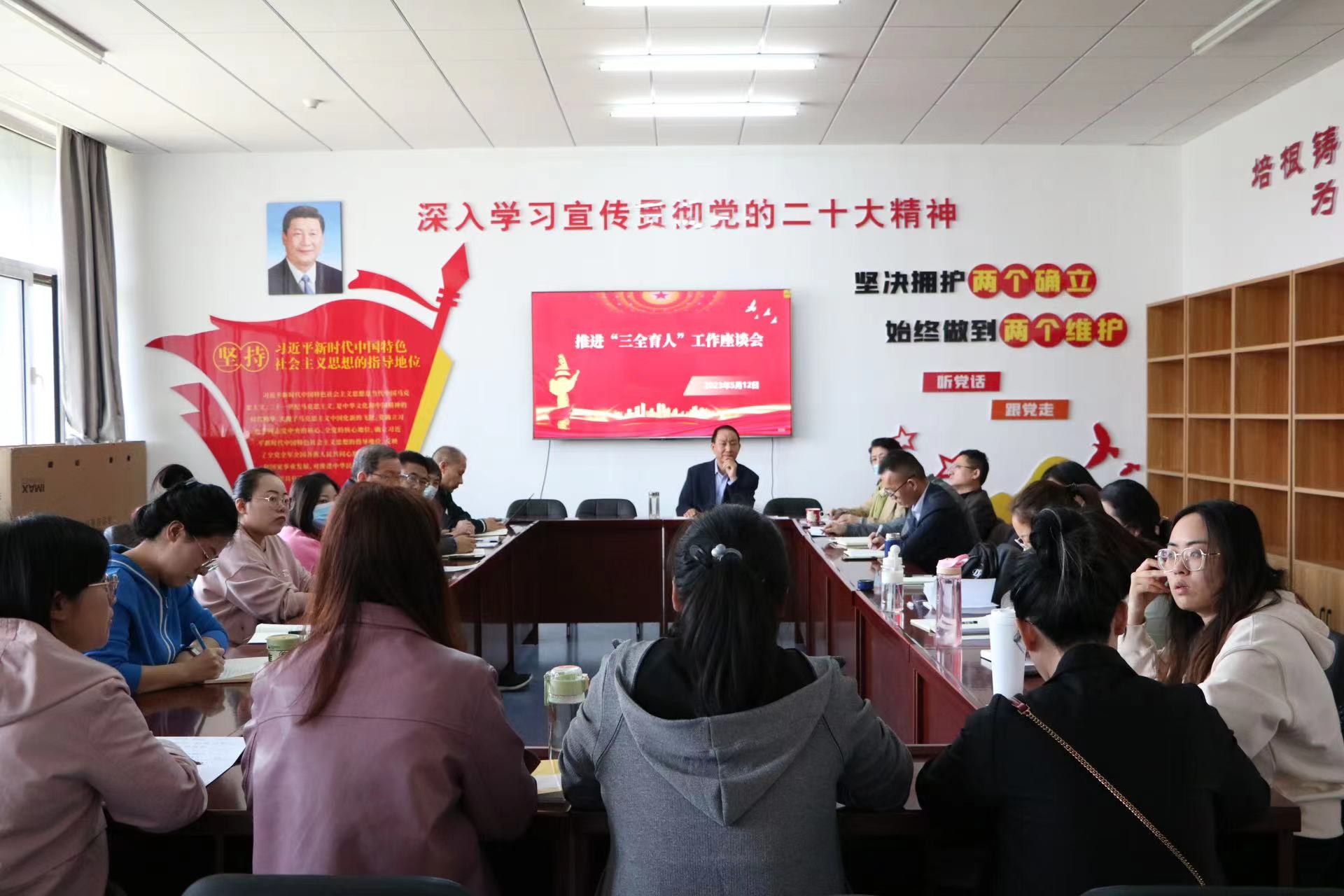 为深入开展学习贯彻习近平新时代中国特色社会主义思想主题教育,全面落实党的二十大精神,推动学院“三全育人”工作走深走实。5月12日,学院党委副书记赵建君赴思政部开展学院“三全育人”工作调研并主持召开座谈会。思政部、党委办公室、组织人事处、团委、学生处、各二级学院(系部)负责人和“三支队伍”代表参加会议。