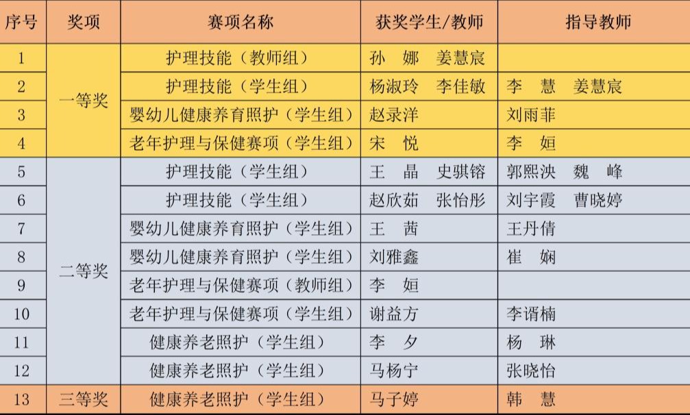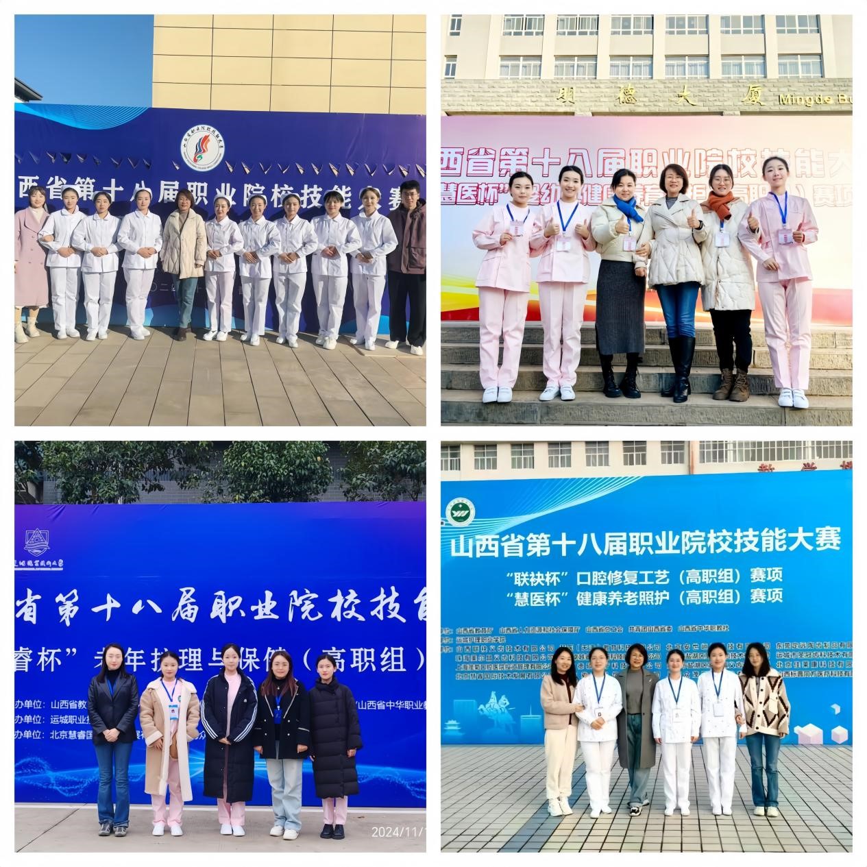 2024年10月-11月,护理学院17名师生分别参加山西省第十八届职业院校技能大赛(高职组)护理技能、婴幼儿健康养育照护、老年护理与保健和健康养老照护赛项等4个赛项,全部获奖!