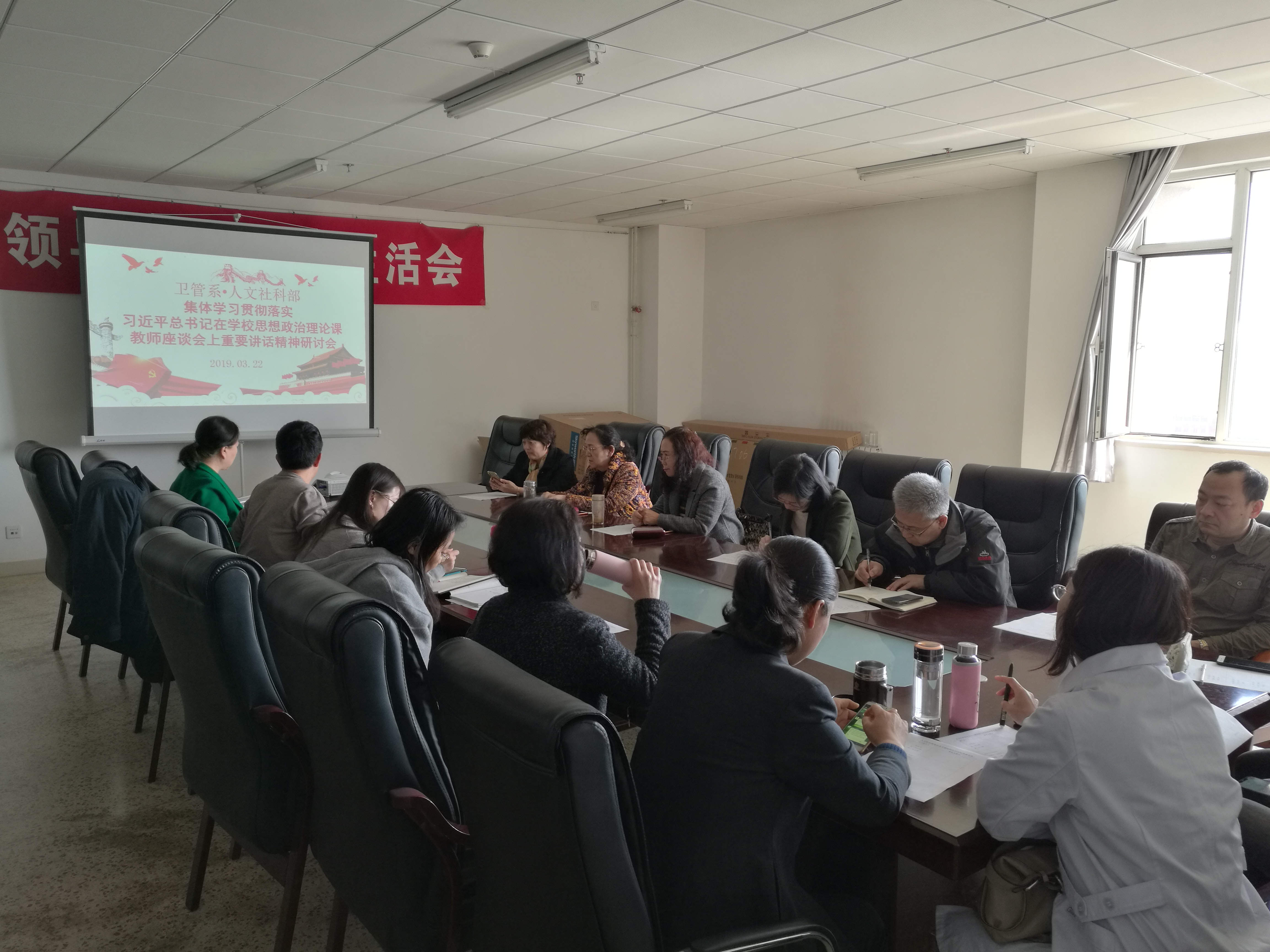 3月22日,人文社科部召开了学习习近平总书记在学校思想政治理论课教师座谈会上的讲话精神研讨会,人文社科部全体教师和行政人员参加了会议。