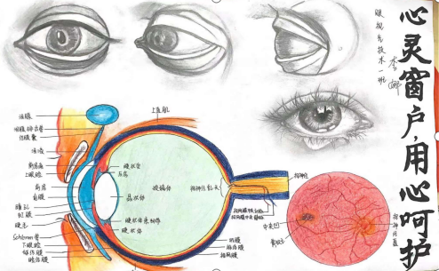 活动2:为了让眼视光技术1-2班同学对眼睛的解剖结构有一个更完整的认识,班内举办了全员皆参与的“眼解剖结构”绘画大赛,并有20名同学的作品获奖。
