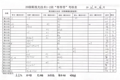 活动1:为了提高眼视光技术1-2班班级凝聚力营造出良好的学习氛围,尹慧老师在班内成立由班委任组长、班内同学为组员的“帮帮带”学习小组。
