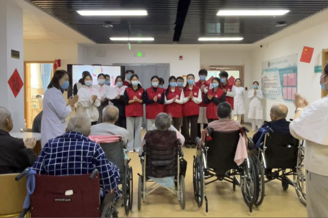 活动伊始,社区卫生服务中心负责人对中心“医疗+养老”双轨服务模式及日常运营概况进行介绍。随后,志愿者发挥专业优势与青春热情,分工协作,细心协助老人整理起居环境,认真打扫餐厅卫生,为他们营造整洁舒适的生活空间;运用所学知识,耐心为老人测量血压、监测生命体征,并在专业康复师指导下,为老人进行按摩护理,开展康复指导;陪伴在老人身边,与老人亲切拉家常、倾听心声,并带领他们一起做健脑益智的手指操。最后,志愿者与老人们共同唱响一首首经典红歌与怀旧曲目,在悠扬的旋律中,将浓浓的关怀与温暖传递到每一位老人心间。